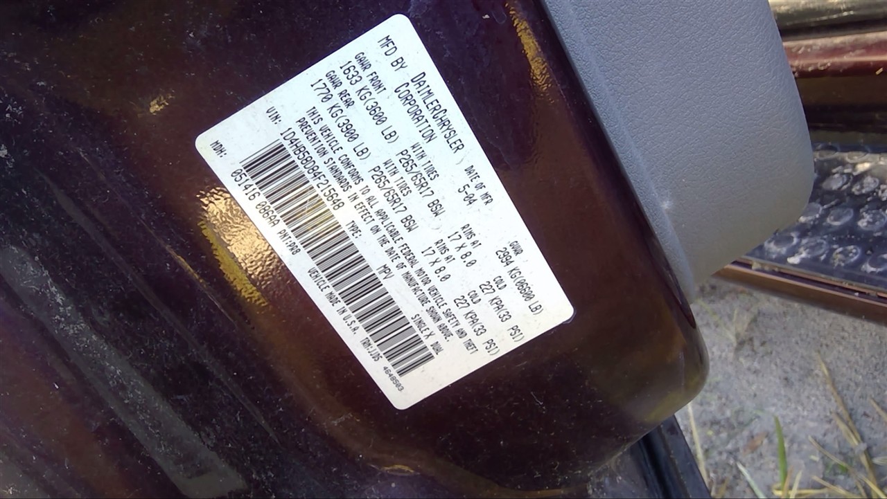2004 DODGE DURANGO Part:682 Stock:15603 AC Compressor MAROON 04 5.7L R01410794