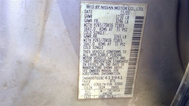 2006 NISSAN FRONTIER Part:300 Stock:14840 Engine Assembly 4.0L,AOD,11-05,CORE PARTS ONLY 05-08 4.0L (VIN A 4th Digit VQ40DE) R00899806