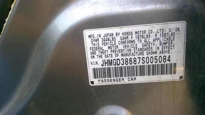 2007 HONDA FIT Part:590 Stock:15219 Engine Control Module 3-06,1.5L,AOD,GRAY 07-08 Electronic Control Module; (RH Kick Panel) US Market Base AT R01151411